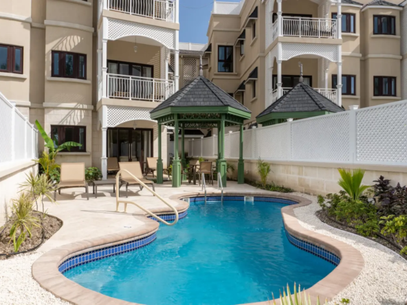 Experience elevated living in this beautifully designed one-bedroom residence adorned with timeless Crane coral stone finishes. Positioned on the ground floor, residents can savor lush garden vistas while lounging by their private pool.