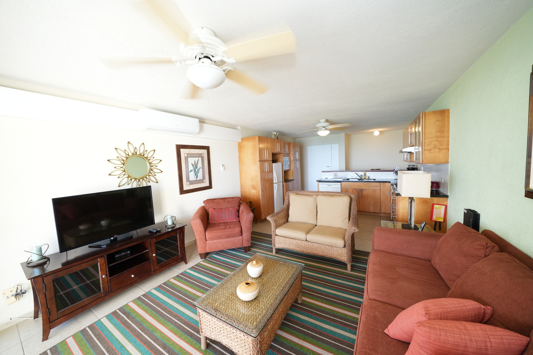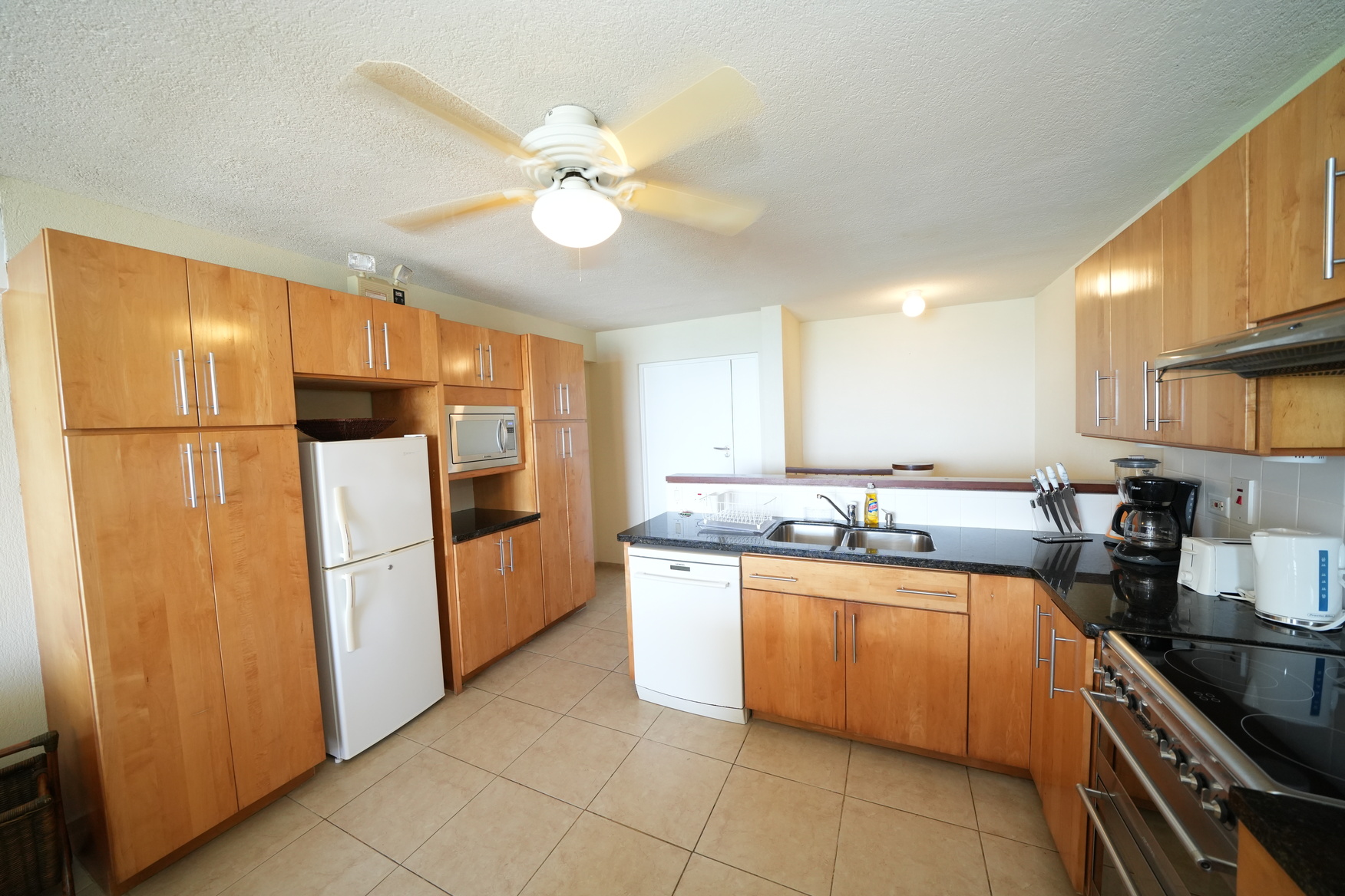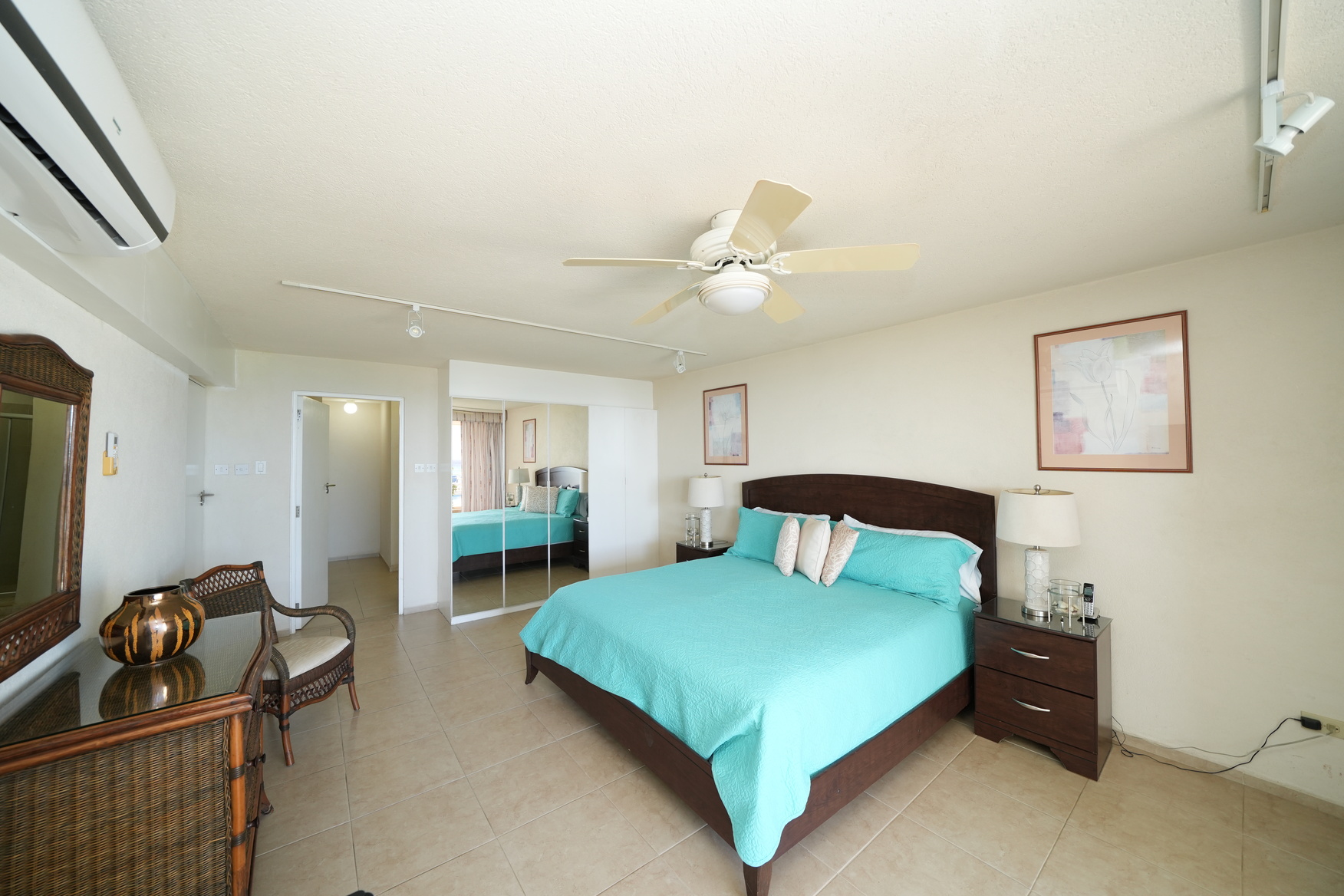 Apartment 2 is a beautifully designed 2-bedroom, 2-bathroom beachfront duplex—one of only seventeen luxury residences in this exclusive development. The open-plan living and dining area seamlessly flows to large picture windows framing uninterrupted ocean views of the jetty, pool, and turquoise sea beyond. The apartment comes fully air-conditioned and furnished with ceiling fans, along with a modern kitchen featuring premium appliances including a fridge, cooker, microwave, dishwasher, washer, and dryer.