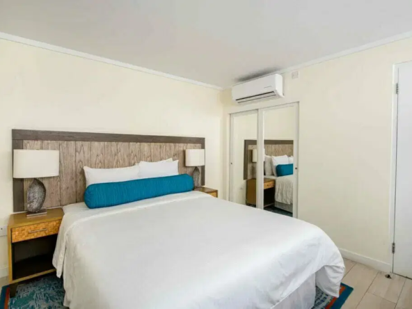 These condos feature 1 spacious bedroom and separate living area, a fully equipped kitchen, and a private balcony or patio. They come with air conditioning and a flat screen TV. The 1 Bedroom Suites are perfect for families or groups of friends looking for a comfortable and spacious place to stay during their vacation in Barbados.