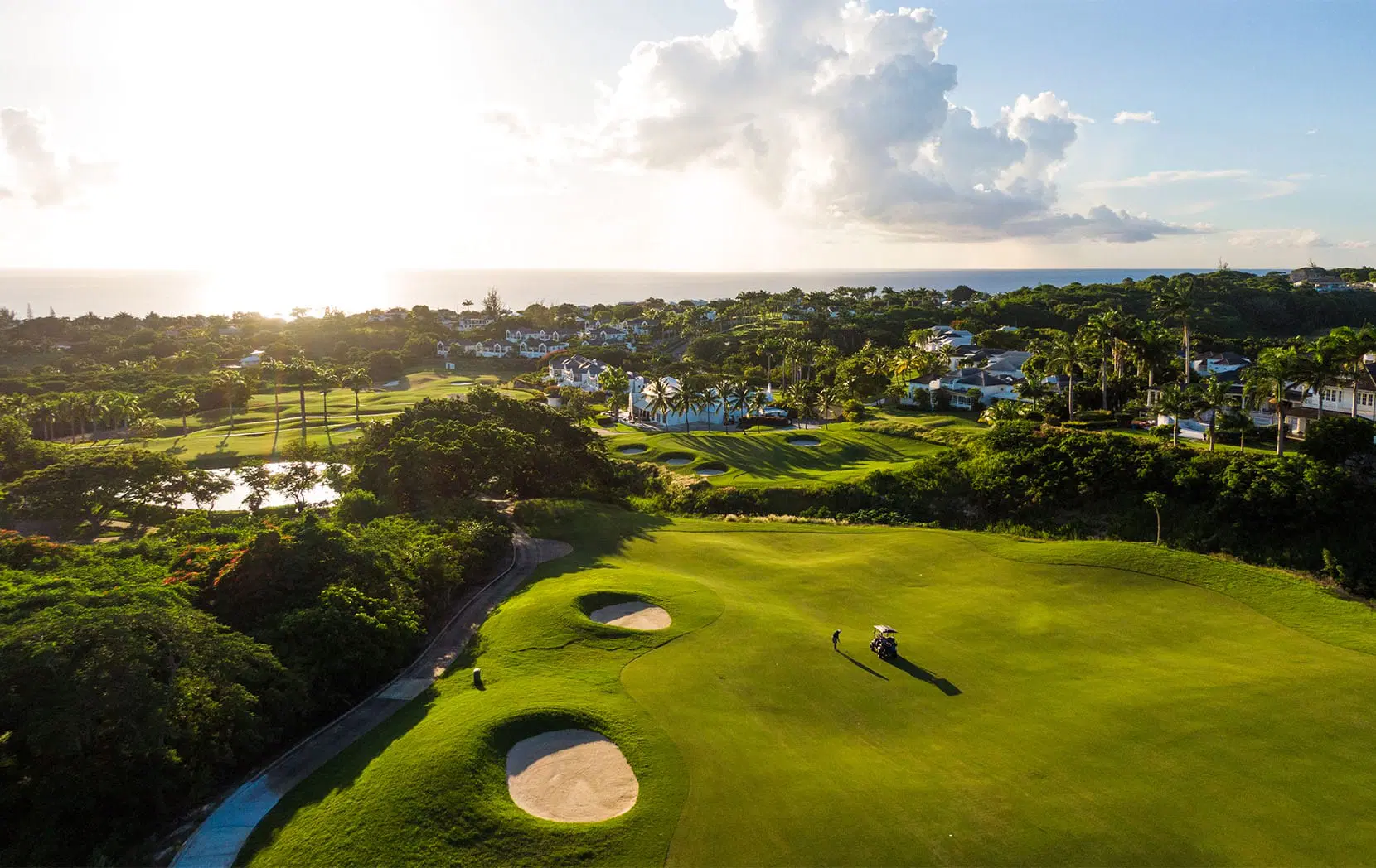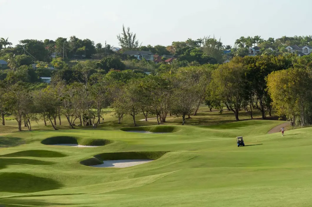 The master suite, along with one guest bedroom, opens onto a large balcony with beautiful views of the fairway and the Caribbean Sea. The master suite also includes a generous dressing room and lounge area, offering an added touch of luxury.