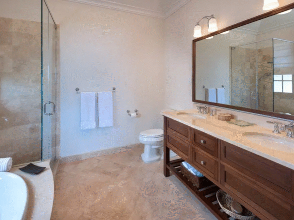 The Courtyard Villa includes a golf cart garage and an owner’s storeroom as well as private parking for two vehicles. This amounts to over 2,900 Sq. Ft. of internal space under the roof. The bedrooms offer air conditioning, and there is solar water heating, LED energy-efficient lighting, energy-efficient Miele kitchen appliances, a traditional cedar shingle roof, coral stone accents, mahogany interior doors and trim, natural travertine stone flooring, Kohler bathroom fixtures and fittings, impact-resistant windows and doors as well fibre to the home technology, wireless internet solution and security alarm.