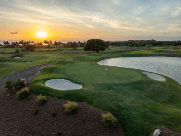 The Courtyard Villa accommodates 3 bedrooms, all enjoying en suite private bathrooms and an open plan flexible living space consisting of the kitchen, dining and living areas. The living spaces open onto the eighteenth fairway and sea views with a covered verandah and swimming pool deck with plunge pool, and also opens up onto the courtyard garden providing opportunities for ‘alfresco’ dining or a shaded retreat from the midday sun.