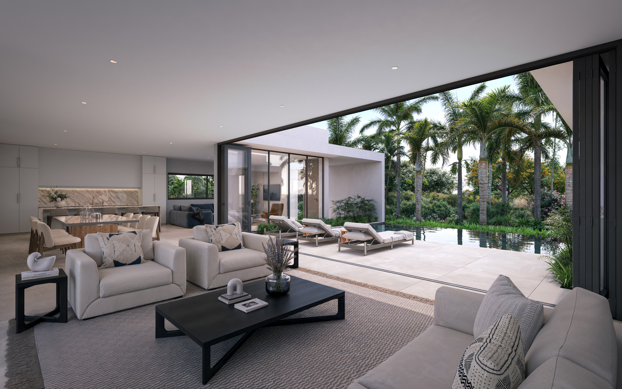 Guided by biophilic design principles, Villa Oasis draws inspiration from its surroundings—verdant tropical gullies, elevated ridgelines, and panoramic vistas. Sustainable materials and energy-efficient features enhance both form and function, delivering an elevated yet environmentally mindful lifestyle. Owners have the opportunity to personalize their space with thoughtful upgrades such as a barbecue terrace, extended master suite lounge, or floor-to-ceiling sliding glass doors that open the guest rooms to nature.