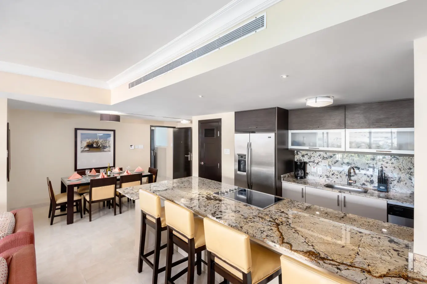 Feel at home in the incredibly spacious ocean front one bedroom condos with magnificent views of the south coast, designer kitchens and a luxury bathroom.