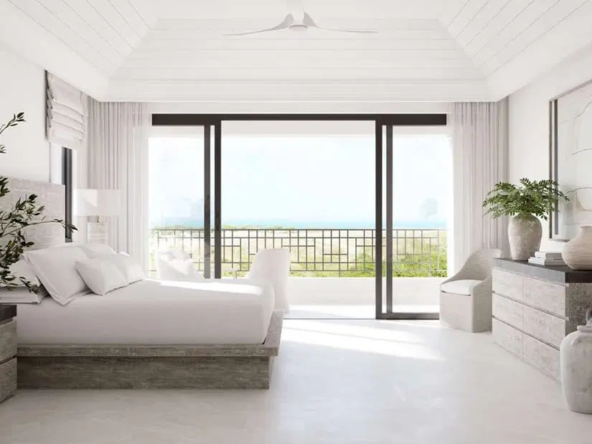 These contemporary 4,405 sq ft residences showcase an open-plan design, beginning with a grand foyer leading seamlessly to a modern kitchen and spacious great room. Boasting magnificent 19 ½ ft ceilings, the large great room invites the world’s purest air to flow through, while offering pristine golf and ocean views from covered and uncovered verandahs.