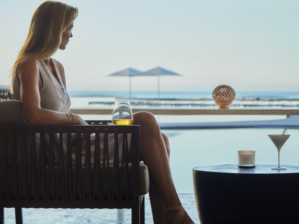 Residents enjoy an array of premium amenities, including a 14th-floor resort deck with a heated pool, outdoor spa, cabanas, summer kitchen, bocce court, and full-service café. Indoor facilities boast a state-of-the-art fitness center with sauna and treatment rooms, multi-sport simulator studio, wine cellar and tasting room, private screening room, and curated art installations throughout the public spaces. Additional services include 24-hour valet, concierge, EV charging stations, and complimentary membership to the Grand Bay Club in Key Biscayne.