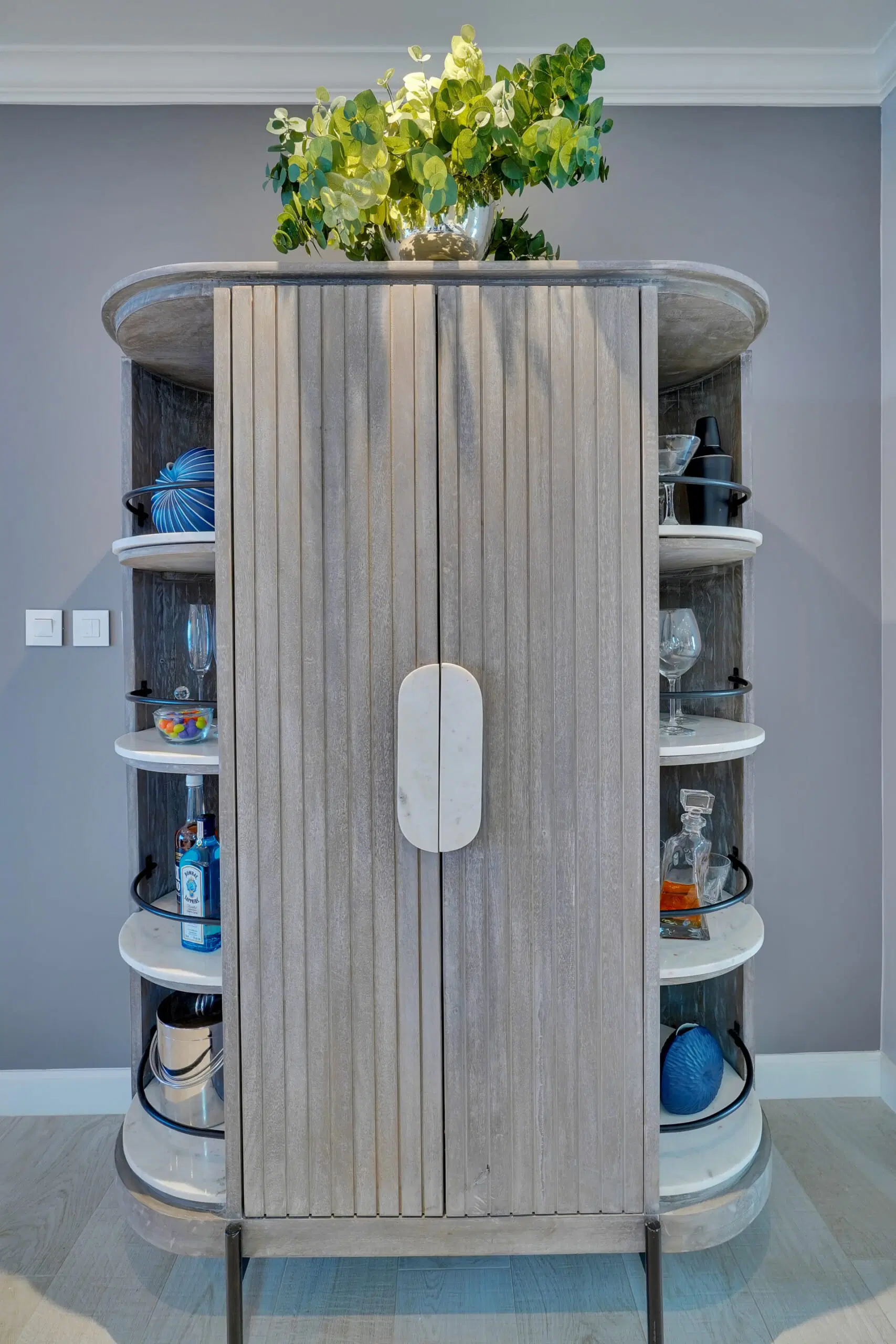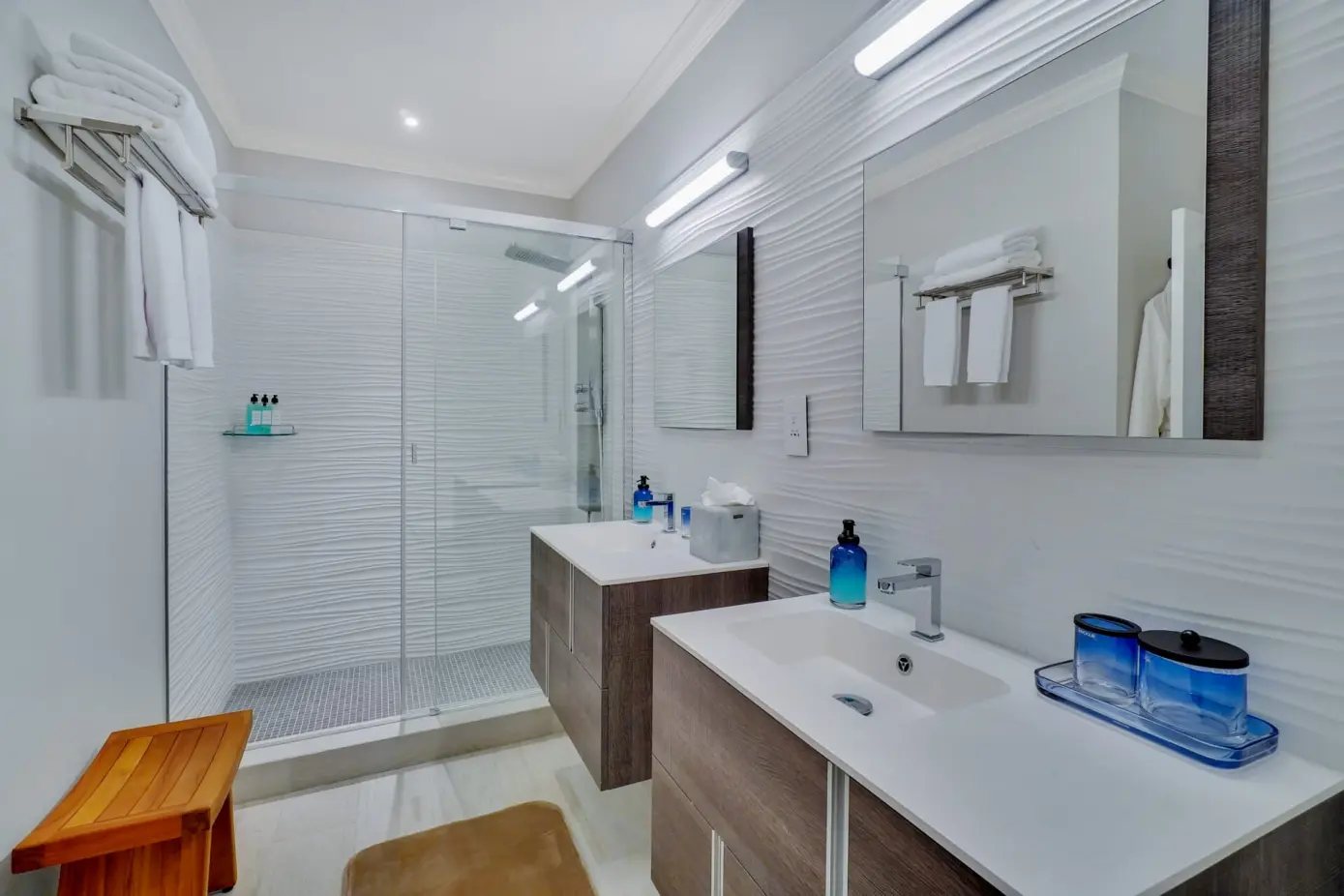 Chefs Kitchen ( SMEG Appliances) Electric range & convection oven Microwave convection oven , Dishwasher , Refrigerator/Freezer, Washer & Dryer Corian Counter-Tops Three Levels of Luxury Accommodation ( 3000sq. ft. / 279 sq. mt. excl. Balconies) Three Bedrooms, Three bathrooms Porcelain Floors and Tile 28′ x 12’ Infinity Pool Outdoor Grilling Station Garage with Laundry Hardwood Mouldings Bespoke Furniture Amenities Gym & Wellness Center Spa Private Access Waterfront